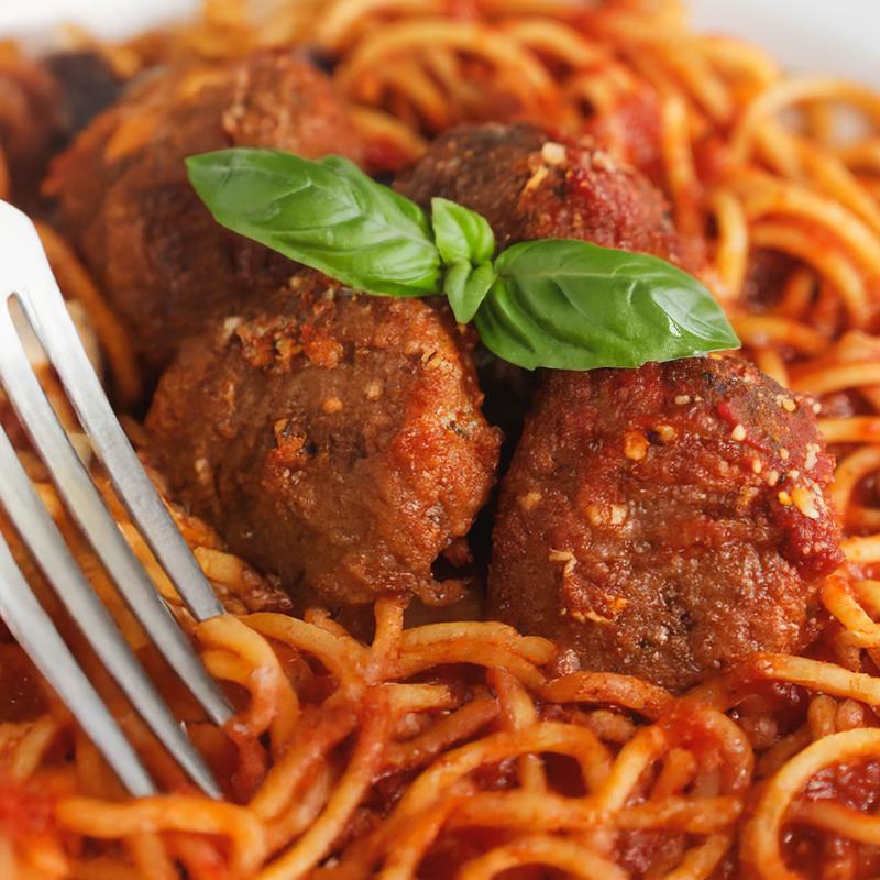 homemade meatballs made from scratch in the kitchen; Dinner includes Garlic Bread